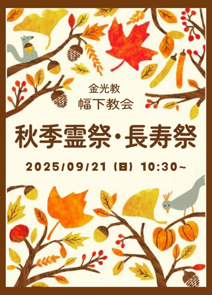 令和7年9月21日(日)10時30分より、 金光教幅下教会の「秋季霊祭・長寿祭」をお仕えします。 -
